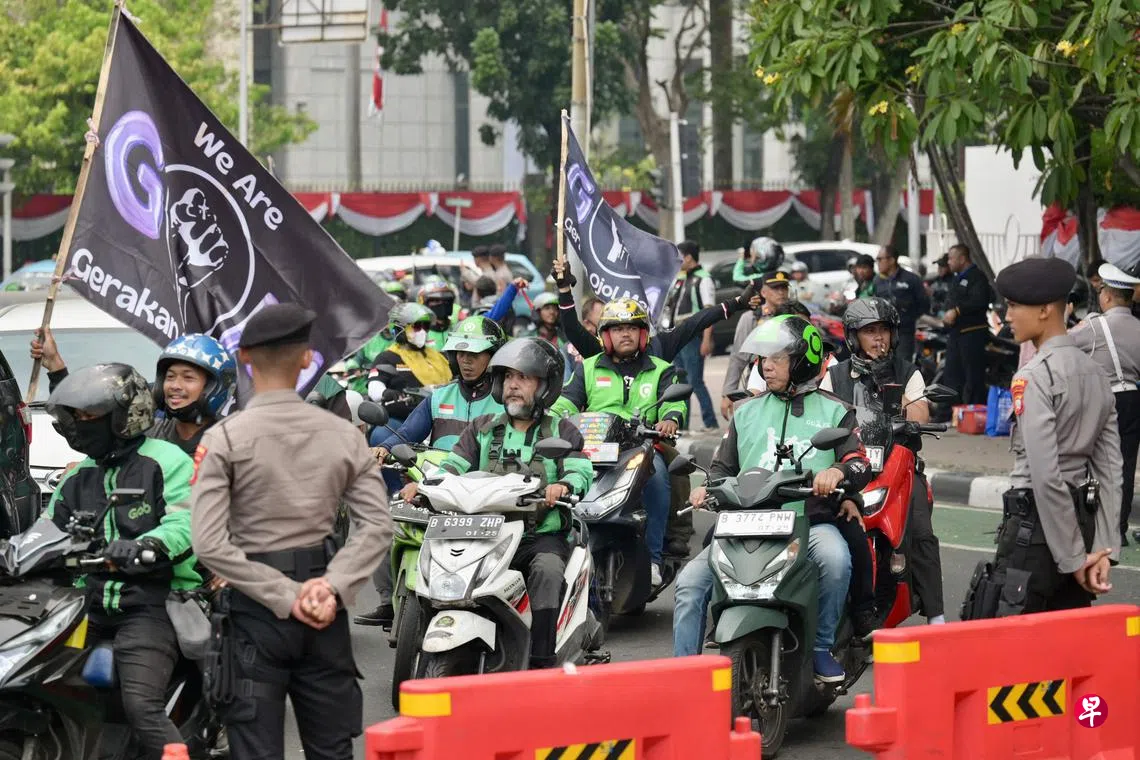 印度尼西亚多个城市爆发罢工示威,超过1000名私召车司机和骑士抗议工资低,呼吁政府为他们提供更多保护。