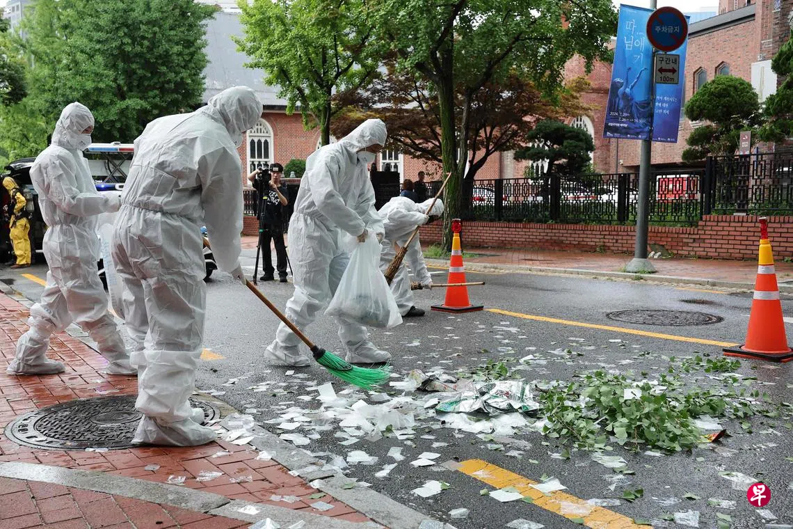 韩国联合参谋本部说,朝鲜连续两天再次对韩国投放超过420个垃圾气球。