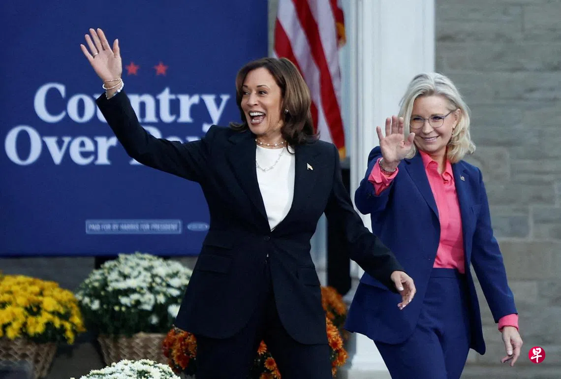 美国民主党总统候选人、副总统哈里斯与共和党前众议员利兹·切尼,一起到共和党诞生地——威斯康星州——拉票。