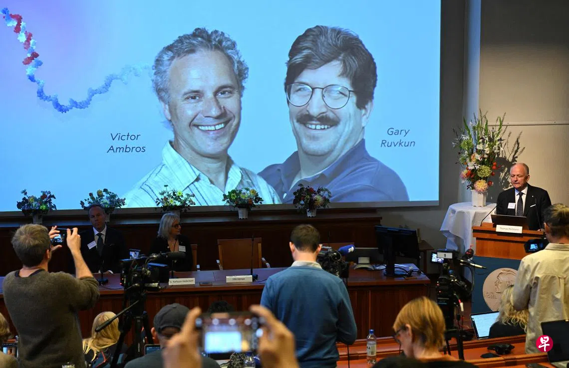 综合外电报道,瑞典卡罗琳医学院星期一(10月7日)宣布,美国发育生物学家安布罗斯和分子生物学家鲁夫昆,因发现微小核糖核酸(RNA)及其在转录后基因调控中的作用,共同获得2024年诺贝尔生理学或医学奖。