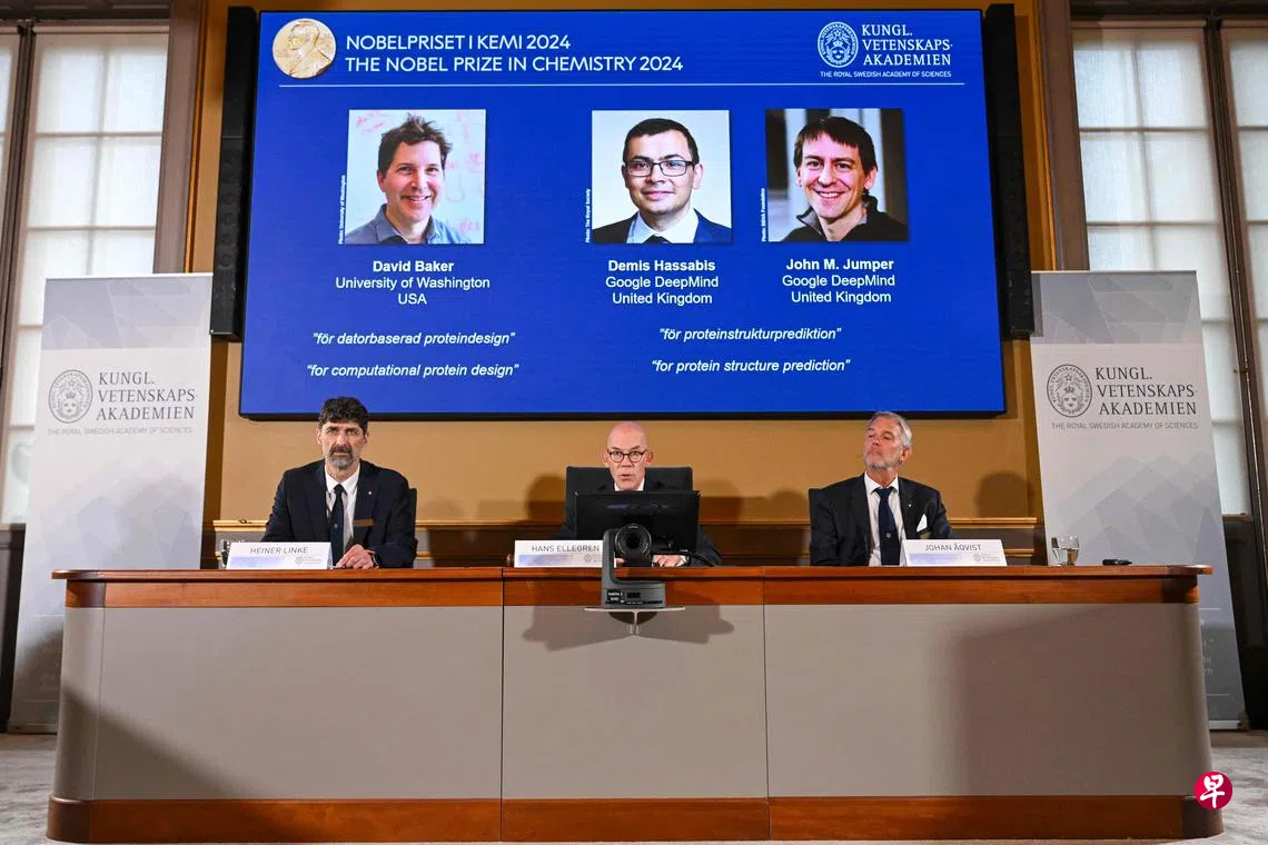 路透社报道,颁发化学奖的瑞典皇家科学院星期三(10月9日)宣布:英国科学家德米斯·哈萨比斯(Demis Hassabis)以及美国科学家戴维·贝克(David Baker)和约翰·江珀(John M. Jumper )获得诺贝尔化学奖。