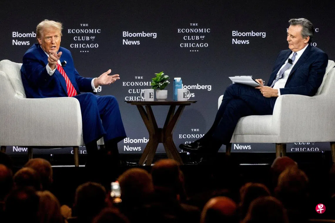特朗普星期二(10月15日)在芝加哥经济俱乐部接受彭博新闻总编米思伟(John Micklethwait)的访问时,否认他的贸易保护主义政策和其他财政提案可能会推高联邦债务、激怒盟友并损害美国经济。他说:“我们一切都是为了促进增长。我们将把企业带回我们国家。”