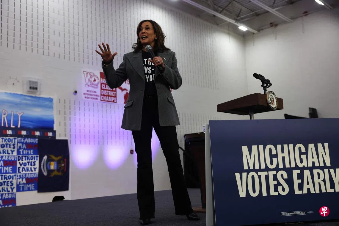 据美国总统选举日还有不到20天,哈里斯和共和党总统候选人特朗普在密歇根州等选情最激烈的州竞争胶着。