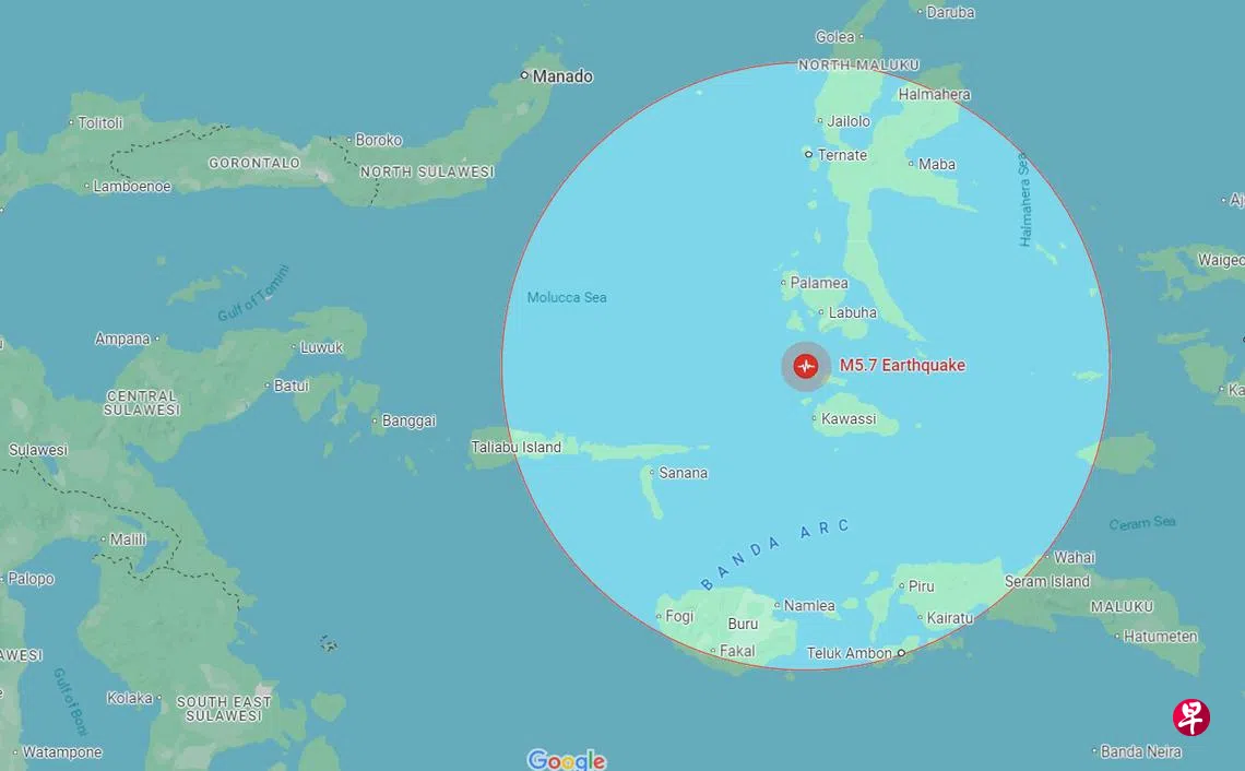 印度尼西亚哈马黑拉海星期一(10月21日)发生5.7级地震。