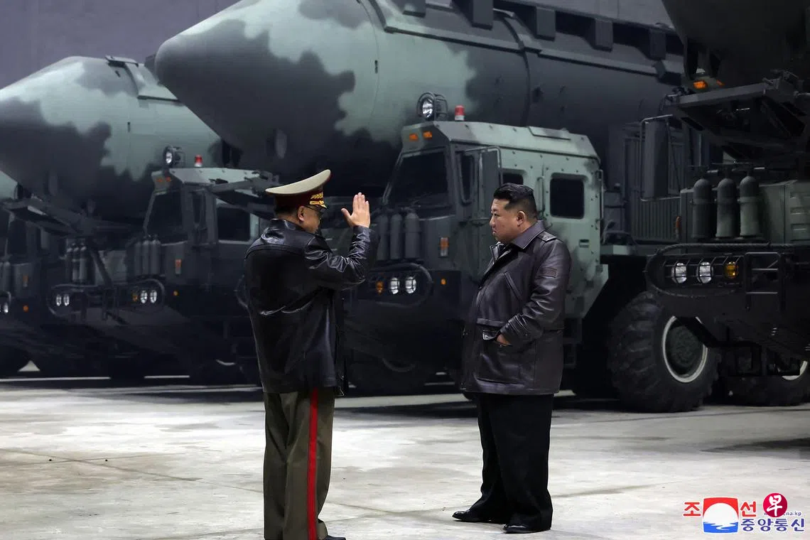 金正恩强调战略导弹是战争遏制力的中枢核心力量,坚持战略导弹武力为先,实现整体武力的技术现代化,是朝鲜劳动党一贯坚持的国防建设战略重要原则。