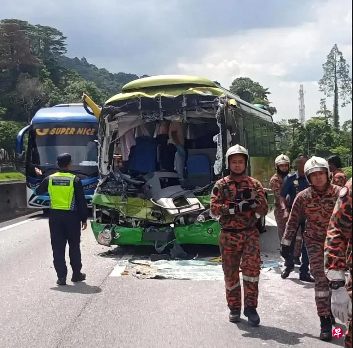 霹雳州消防局助理局长沙巴罗兹星期四发文告说,他们当天中午约1时52分接到通报,在南北大道第230.3公里南下路段发生巴士追撞罗厘事故。