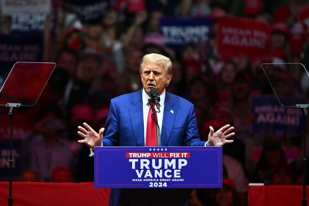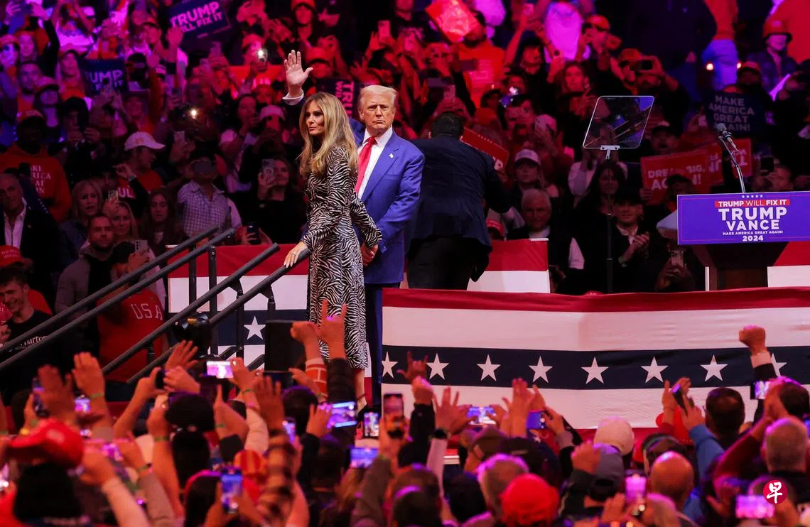 美国共和党总统候选人特朗普星期天(10月27日)傍晚在纽约市曼哈顿中城的最大活动场地——麦迪逊广场花园举行造势大会。