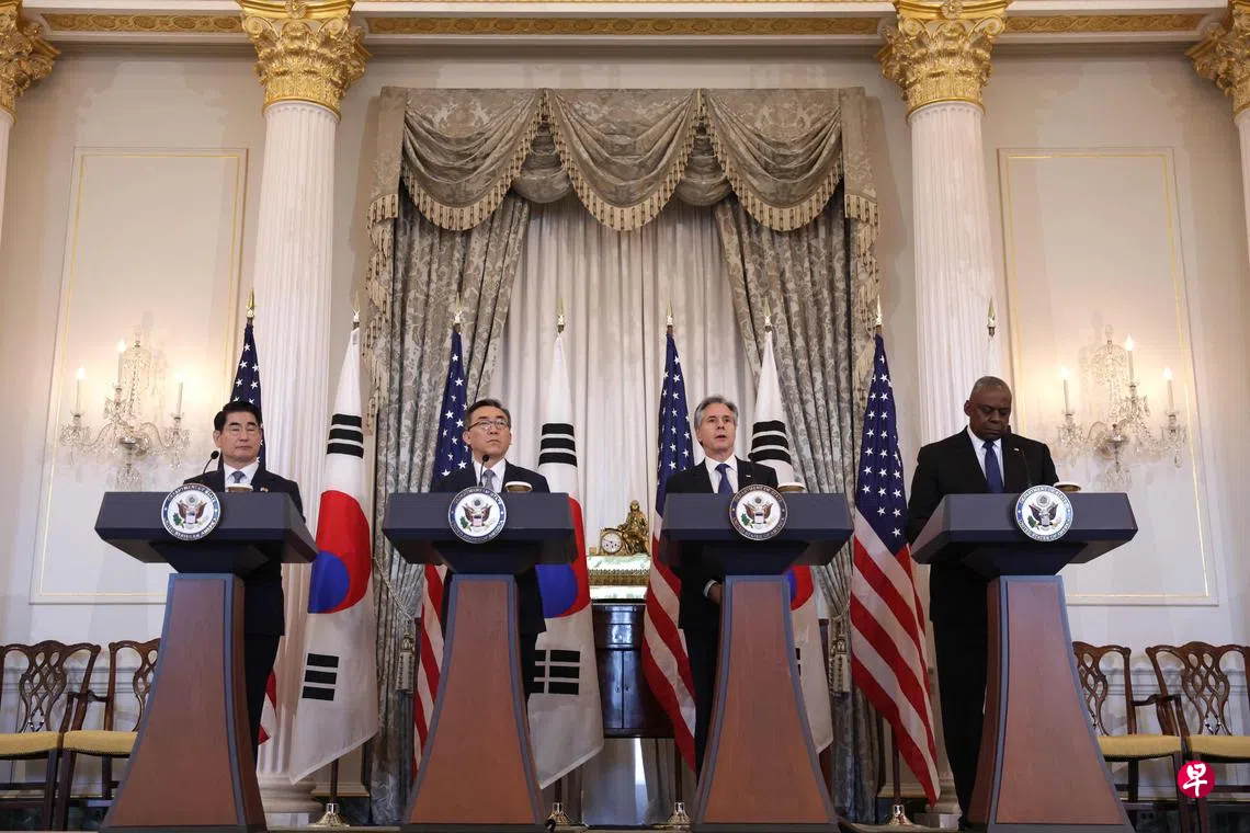 布林肯说,美韩2+2会晤讨论了一系列应对方案,他指莫斯科在它的“绞肉机”战争中使用朝鲜士兵是“明显的软弱迹象”。