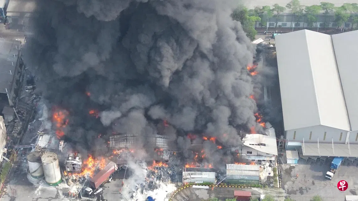 印尼美都电视台(Metro TV)拍摄的画面显示,坐落在雅加达东部边缘城市勿加泗(Bekasi)的一处建筑设施发生火灾,涌现大量浓烟。