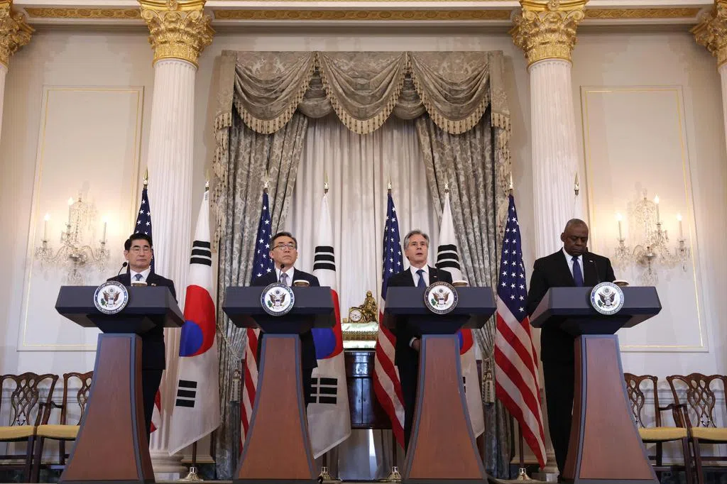 美韩10月31日在华盛顿举行2+2会议,美国国务卿布林肯在会后表示,双方讨论了应对朝鲜派兵援俄的一系列选项,但没有透露细节。
