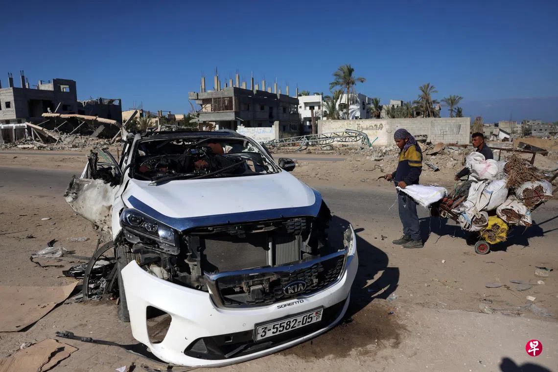 以色列星期六(11月30日)在加沙南部主要城市汗尤尼斯发动袭击时,一辆车子被击中,车上五人全部丧命,包括三名世界中央厨房人员。 (法新社)