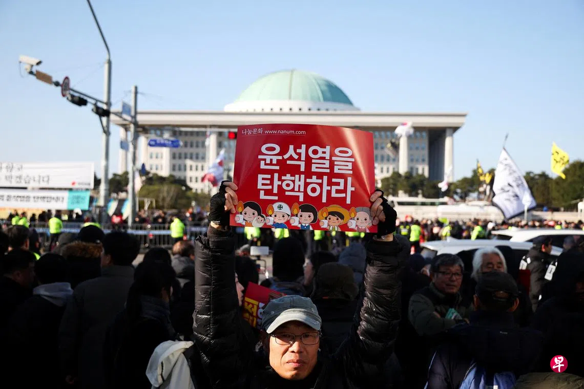 韩国国会将于下午5时(新加坡时间下午4时)召开全体会议,就在野党针对尹锡悦发起的弹劾案进行表决。