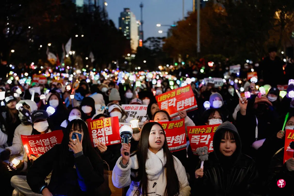 李在明星期天在国会举行记者座谈会时批评称,总统的权限并非尹锡悦个人私有,尹锡悦作为“内乱和军事叛乱的主犯”,应立即辞职或接受弹劾。他进一步宣布,民主党将于12月14日以“国民的名义”正式弹劾总统。