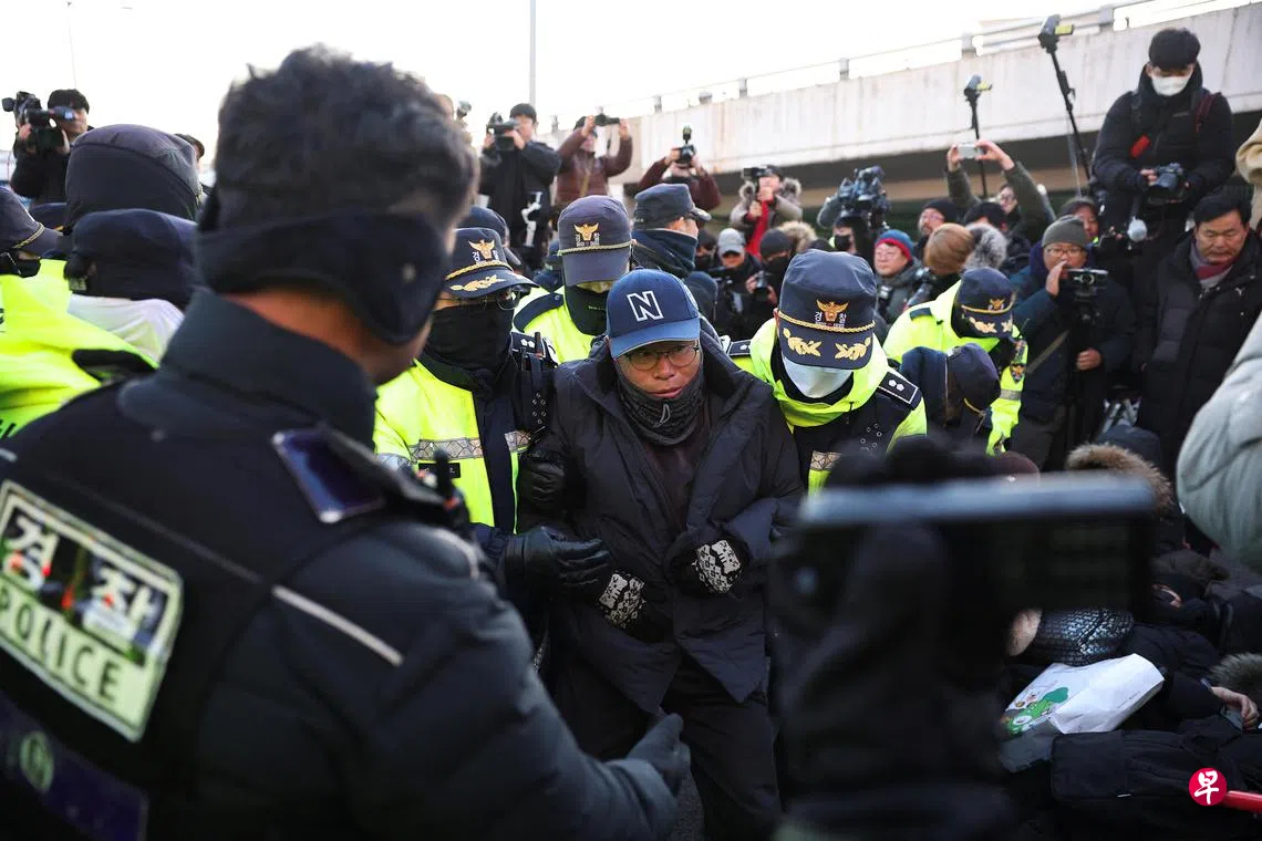 韩国警方在总统官邸附近,驱散被弹劾总统尹锡悦的部分支持者。