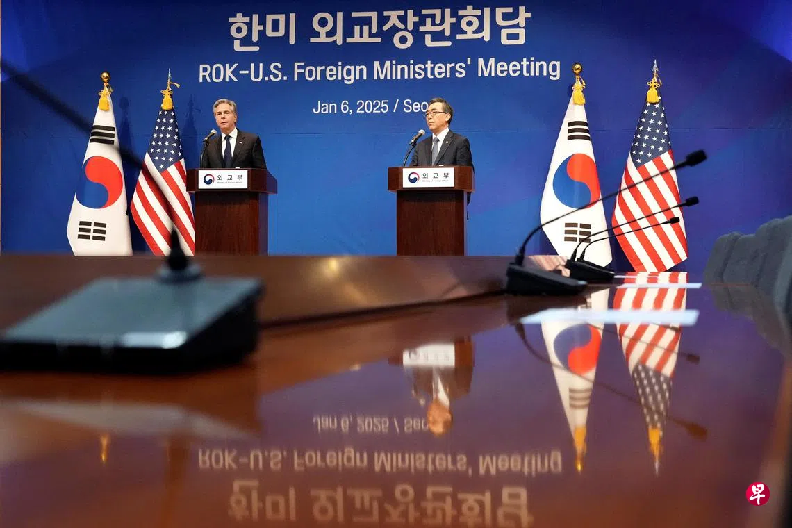 法新社报道,布林肯星期一(1月6日)在首尔的新闻发布会说:“朝鲜已经在接受俄罗斯的军事装备和训练。现在,我们有理由相信莫斯科计划与平壤分享先进的太空和卫星技术。”