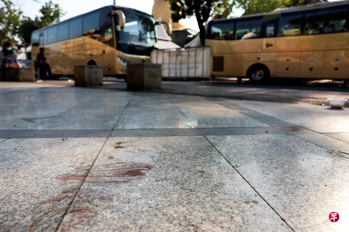 枪杀地点靠近热闹的考山路,法新社记者在现场看到一些血迹。