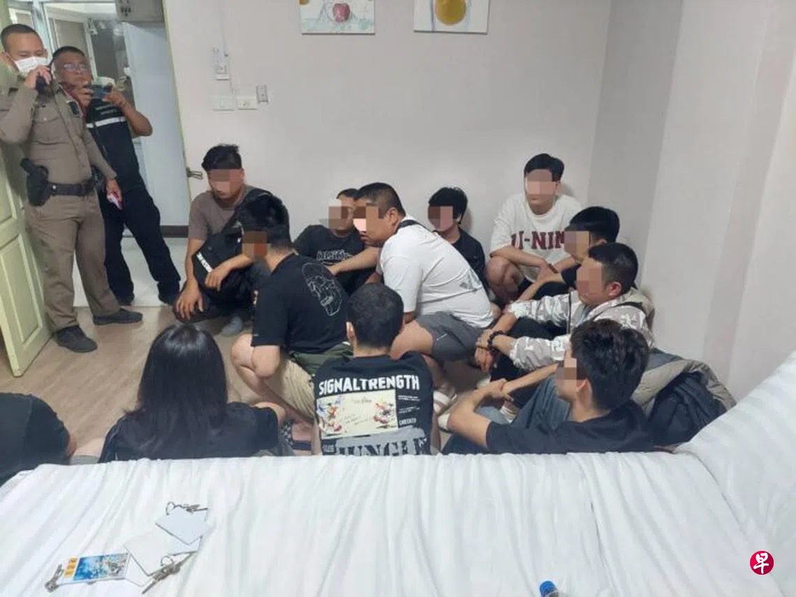 泰国警方根据市民举报,在中部城市一家酒店的房间内发现14名中国公民共处一室,并展开拘捕行动。