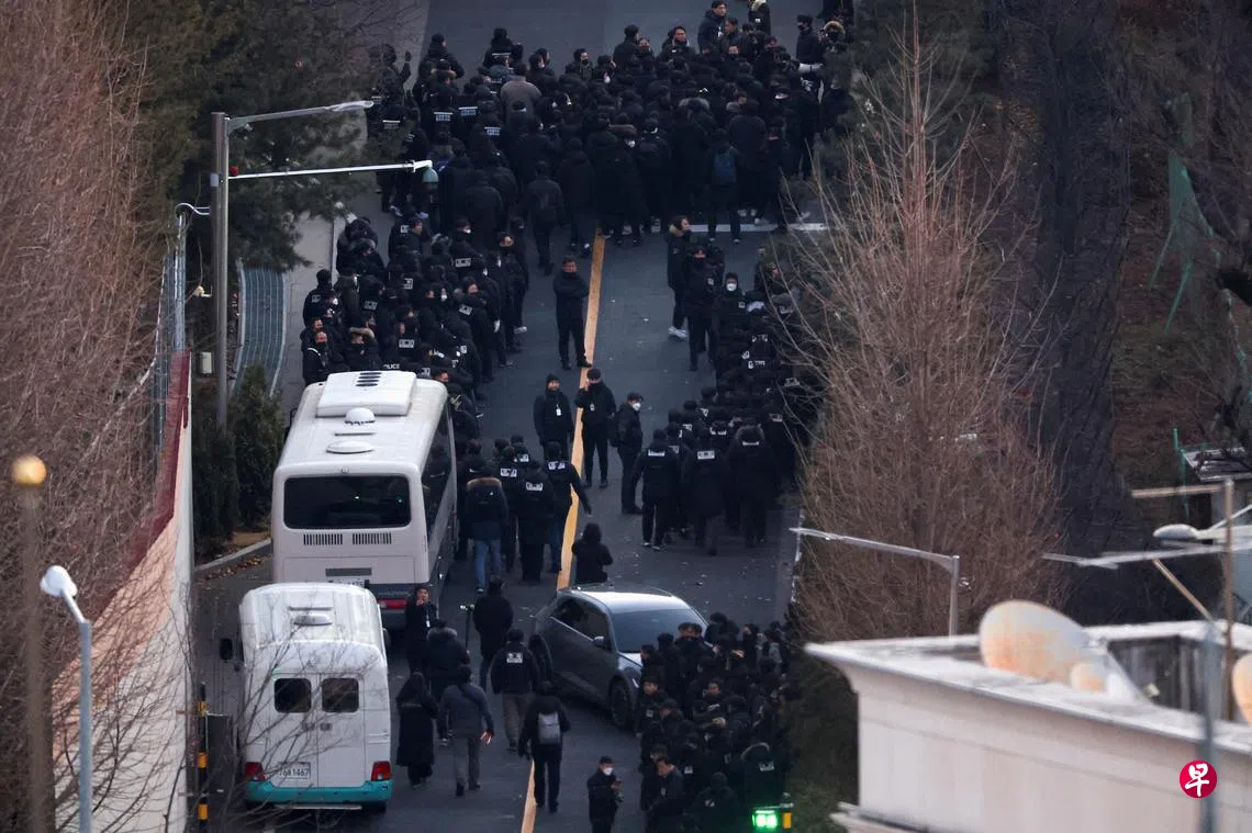 公调处车辆于当地时间凌晨4时20分(新加坡时间凌晨3时20分)左右抵达位于首尔龙山区汉南洞的总统官邸前。同时,国民力量党30余名议员和尹锡悦律师团也到达总统官邸前,与调查人员发生对峙。
