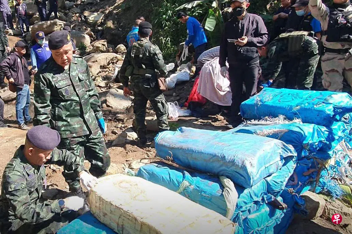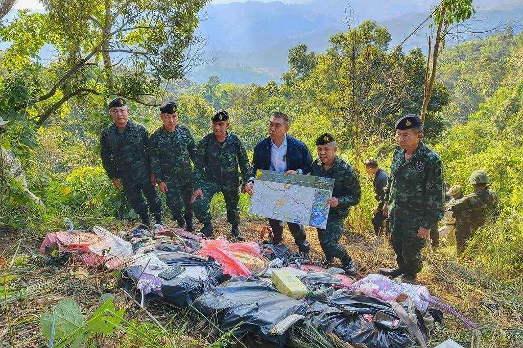 泰国军队连夜确保该地区安全后,于黎明时分进行搜查,发现大量毒品,以及四名走私嫌疑犯弹孔累累的遗体。