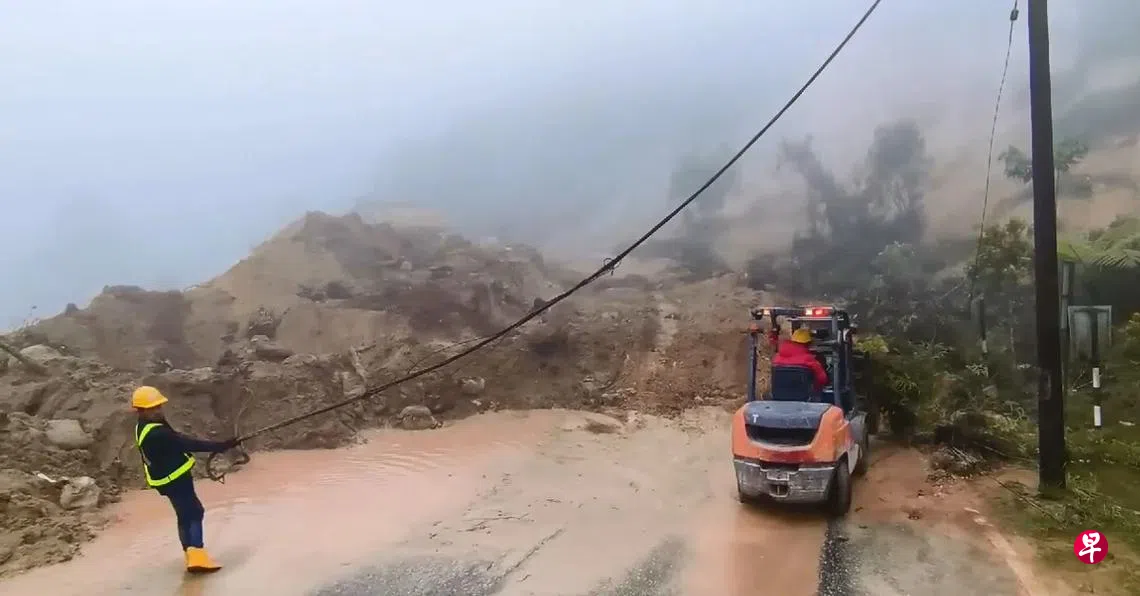 根据马国社交媒体广传的视频,云顶Ion Delemen路靠近香菇园饭店的路段,发生严重土崩事故。这导致整条道路被泥石流掩埋,路旁的电线杆也被殃及,电缆断裂。