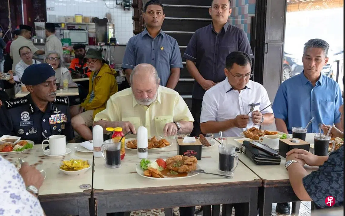 马来西亚国家元首苏丹依布拉欣再次在新山老街享用华族餐厅美食。他这次是到近80年历史的华美茶餐室享用招牌菜海南鸡扒。