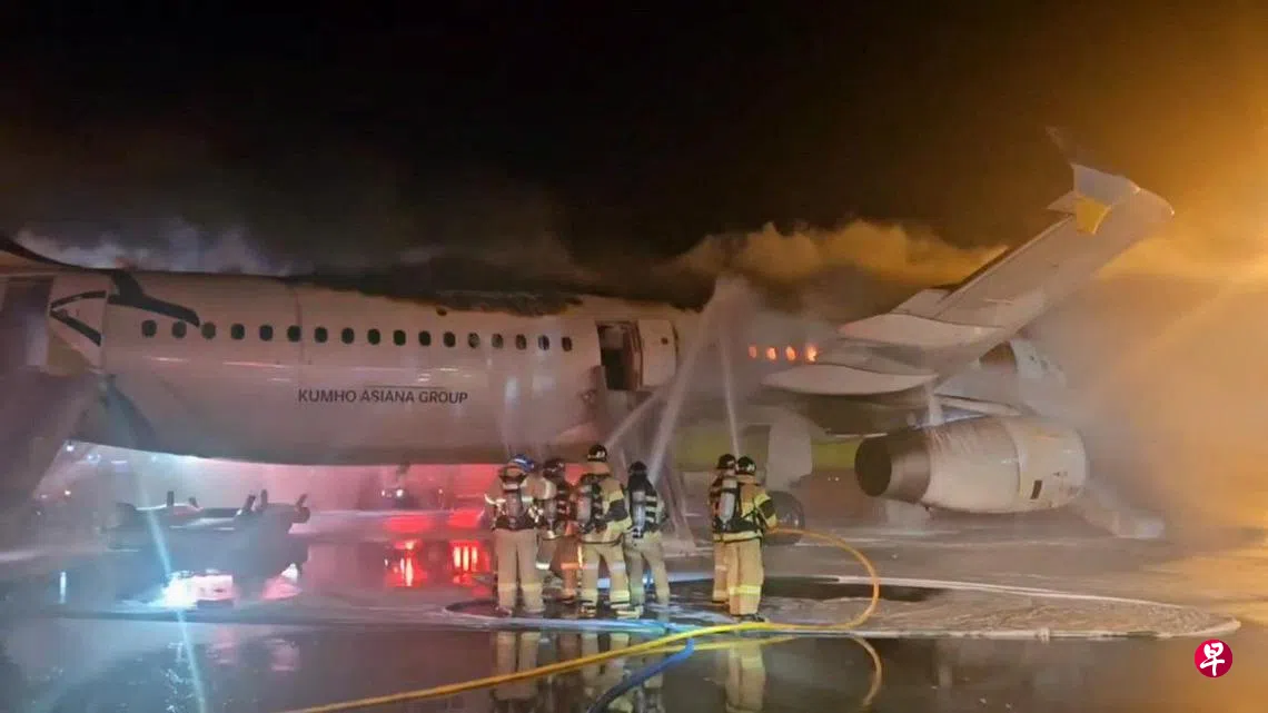 路透社引述韩国消防部门说,火势是从飞机内部燃起。
