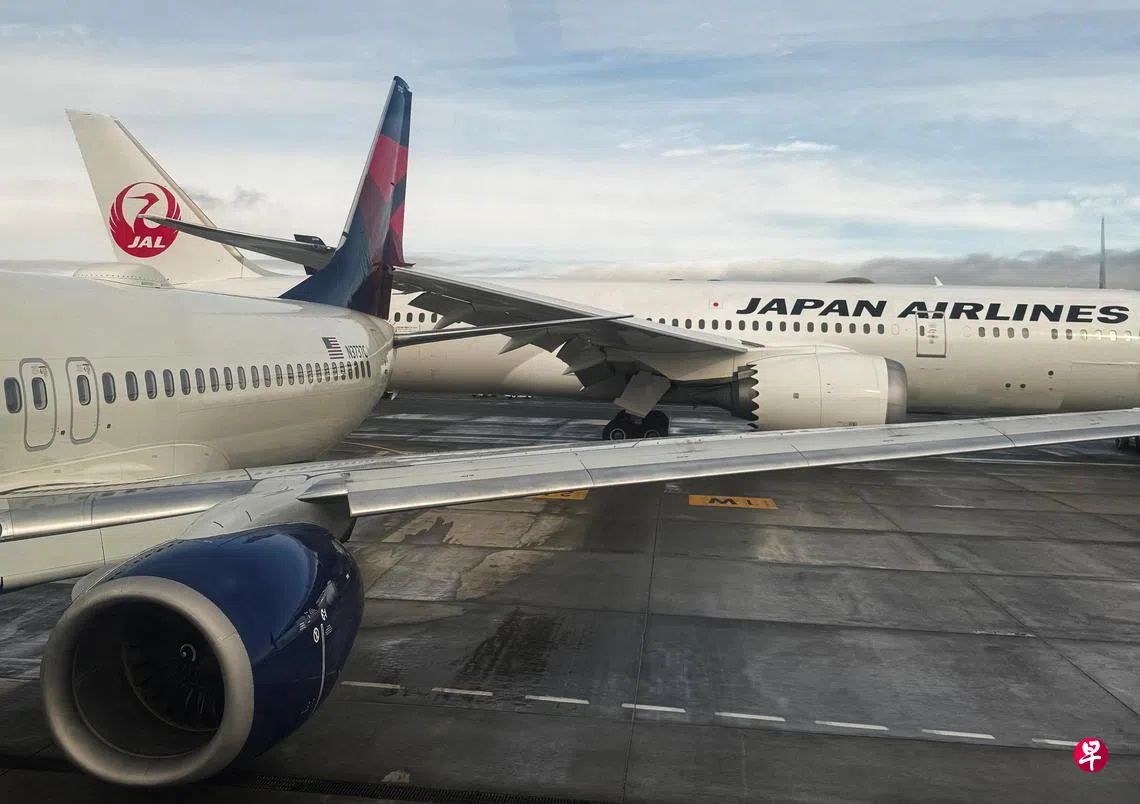 一架日本航空公司飞机的右翼在西雅图-塔科马国际机场滑行时,撞上达美航空公司飞机的尾部。