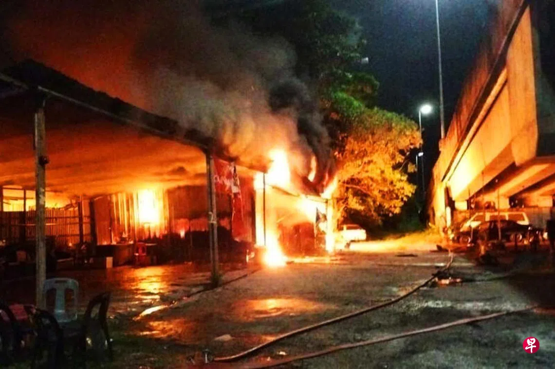 疑附近居民庆新春佳节燃放烟花酿祸,造成马来西亚首都吉隆坡一家汽车厂、电子烟店和小食店失火,另外40辆电单车和一辆轿车也遭殃,全数烧毁。