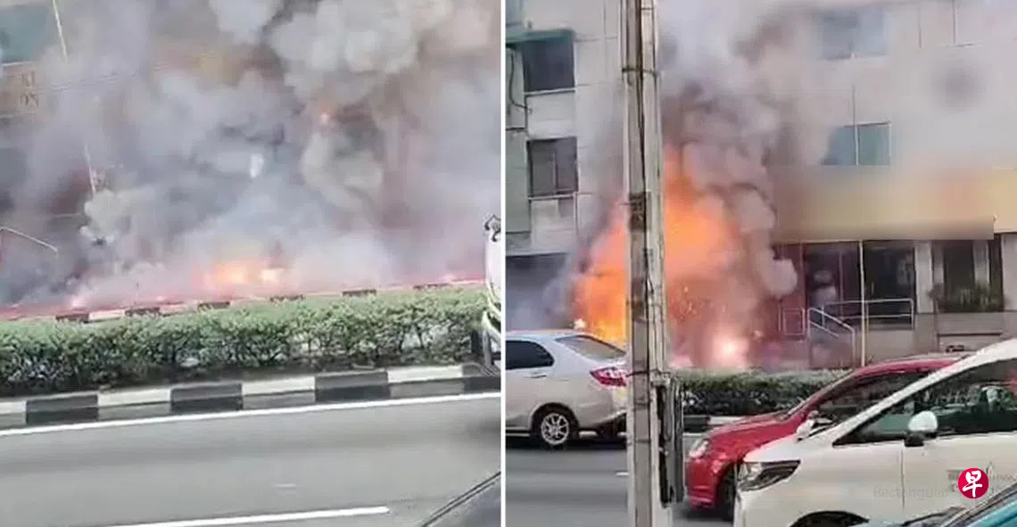 马来西亚首都吉隆坡一家公司的员工燃放爆竹时引发大火,所幸只是熏黑了招牌,没有造成伤亡,但也引起许多网民的担忧,因事发地点旁边就是油站,差点酿成大祸。