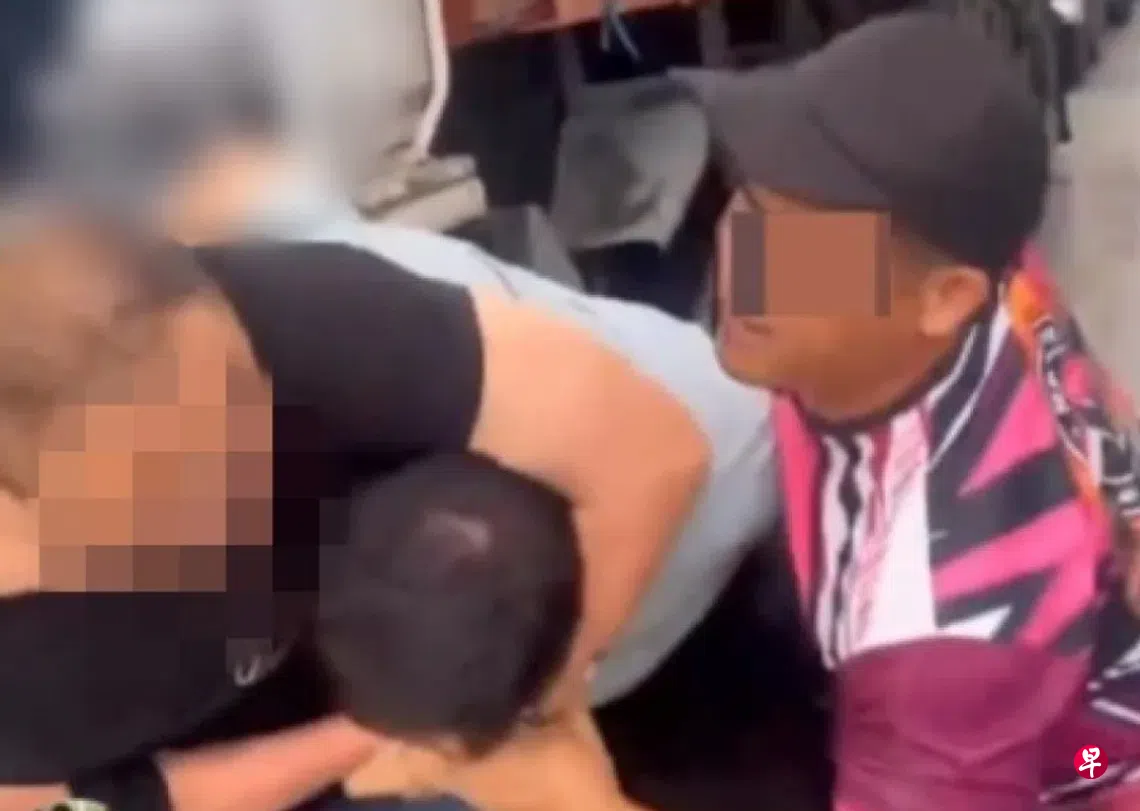 两名男子相互扭打的视频于星期五(2月14日)傍晚在社交媒体流传,地点在由新山往新加坡方向的柔佛长堤。
