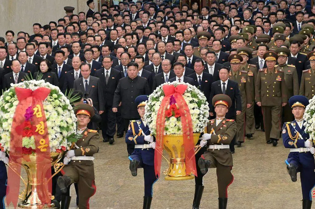朝中社星期一(2月17日)报道称,朝鲜领导人金正恩前往家族陵墓,纪念已故父亲、前领导人金正日的生日。