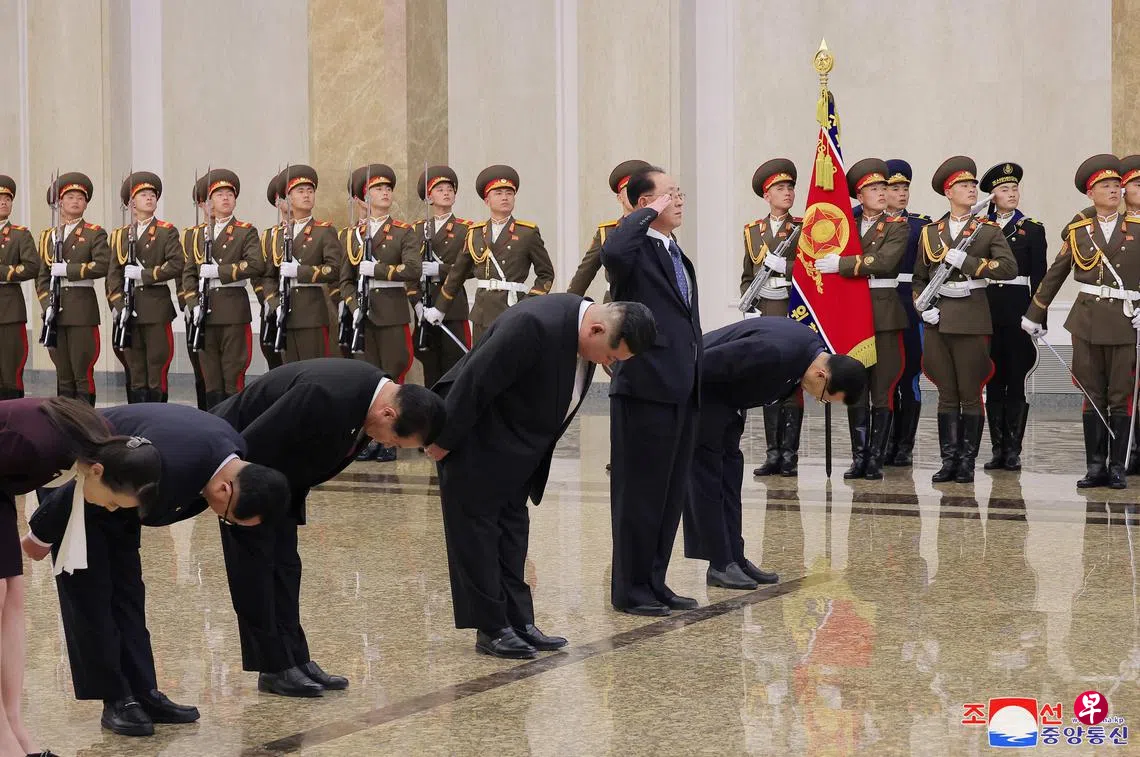 朝中社报道称,金正恩在妹妹金与正、劳动党高级官员和其他助手的陪同下,“以最谦卑的崇敬”向金正日致敬。