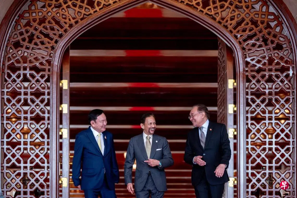 马来西亚首相安华与泰国前首相达信会晤文莱苏丹波基亚,深入探讨缅甸局势及亚细安事务。