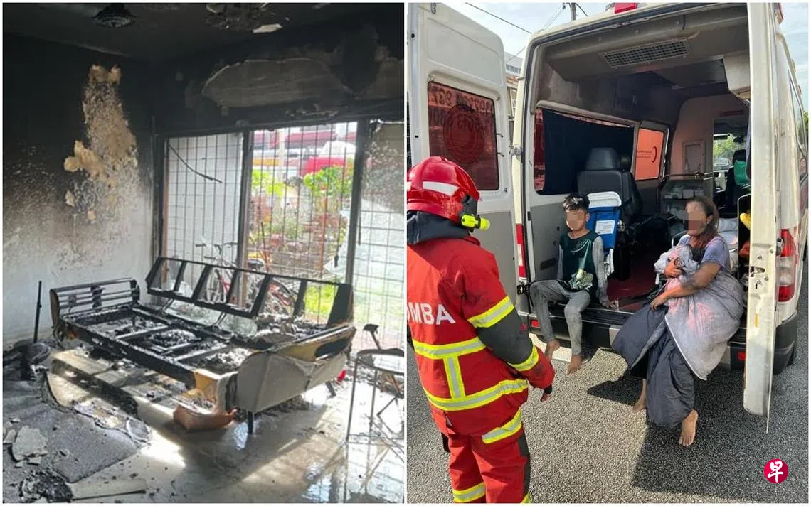 发言人说,母子俩因吸入过量浓烟出现呼吸困难,但没有大碍,两人已送院治疗。