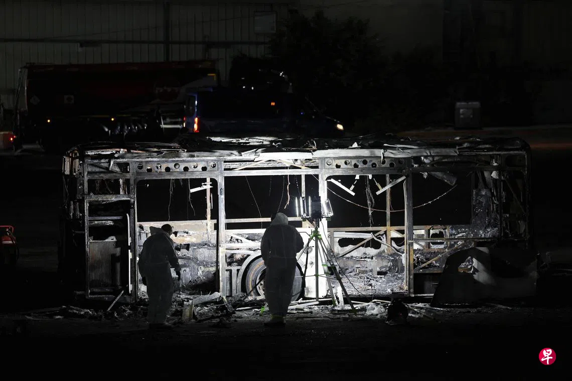 一些以色列电视台播放的电视画面显示,一辆公共汽车完全烧毁,另一辆着火。媒体报道,以色列已要求全国各地的公交车司机停车检查车辆是否还有其他爆炸装置。