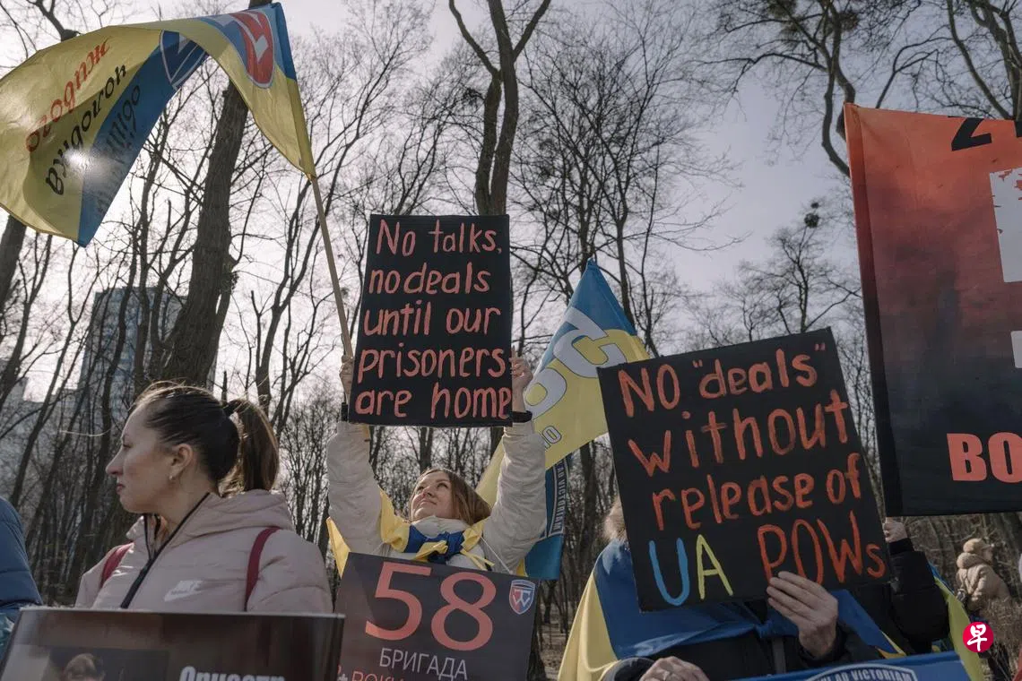 数百名抗议者在美国驻基辅大使馆外集会,呼吁美国关注乌克兰战俘的命运,并确保他们被纳入任何停火协议。