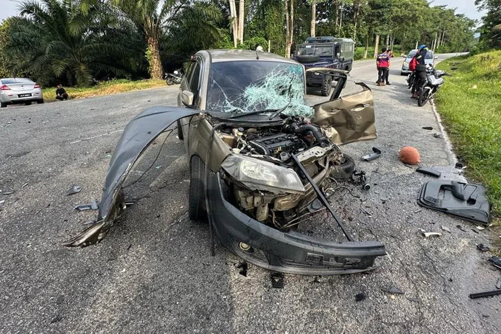 马来西亚吉隆坡一起车祸使得一辆汽车瞬间成了片状,所幸司机奇迹生存。