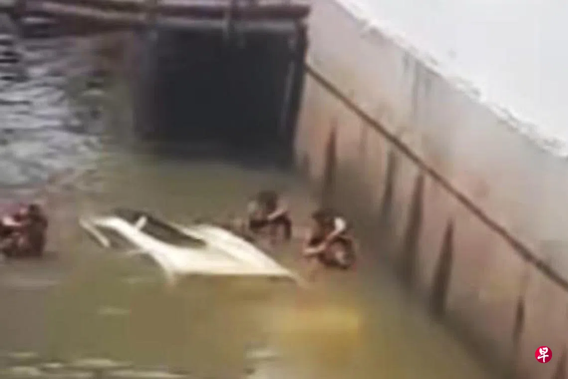 马来西亚柔佛州新山金海湾附近的深沟发生过数起轿车坠沟夺命的车祸,星期一(3月10日)再有轿车坠沟,所幸事发后数名英勇男子跳进沟里施救,救回男驾驶一条命。