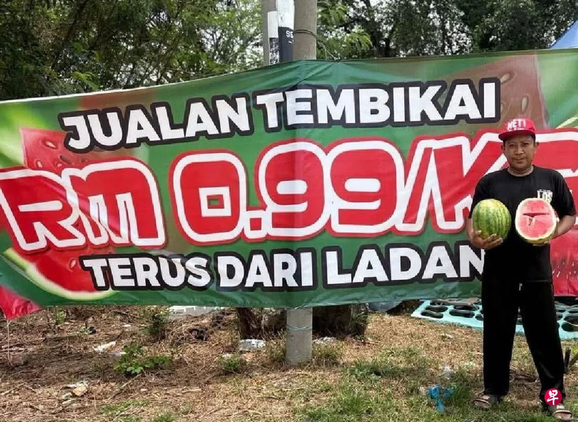 供应过剩便宜卖!由于斋戒月期间市场上西瓜供应过剩,马来西亚一些水果贩被迫将西瓜售价降至每公斤99仙(0.30元)。