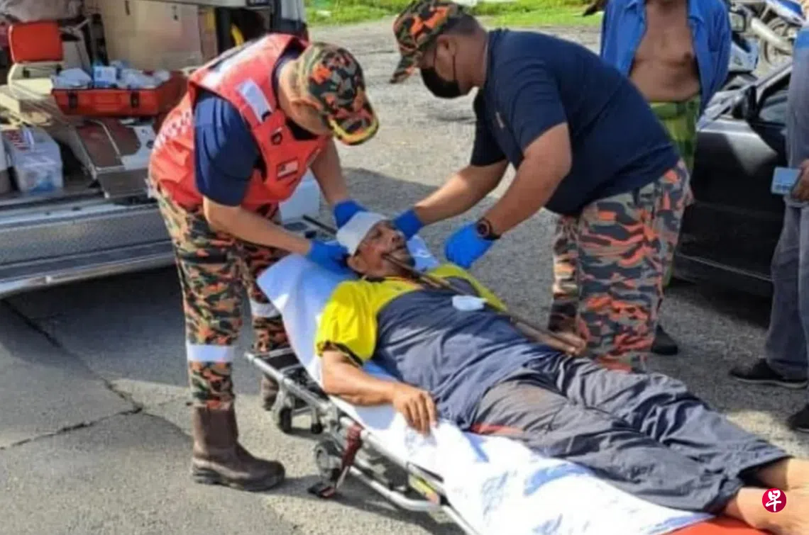 马来西亚吉打州一名男子在一起交通事故中被一根金属杆刺穿头骨,奇迹生还。