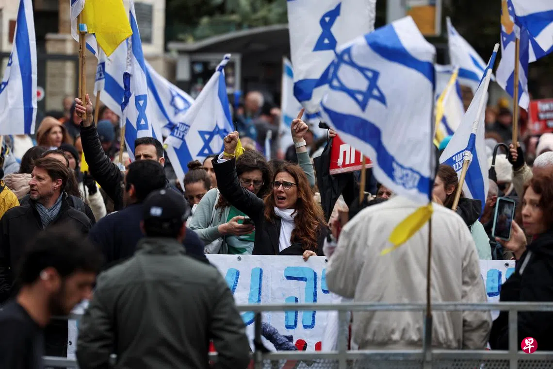 周五有成千上万名以色列人走上街头,在耶路撒冷总理官邸附近抗议以军恢复在加沙的军事行动,要求内坦亚胡下台。一些人担心新的军事行动会危害人质的安全,也有一些示威者指责内坦亚胡利用这场战争来转移国民对他个人问题的注意,包括他正在接受审判的一系列刑事案件。