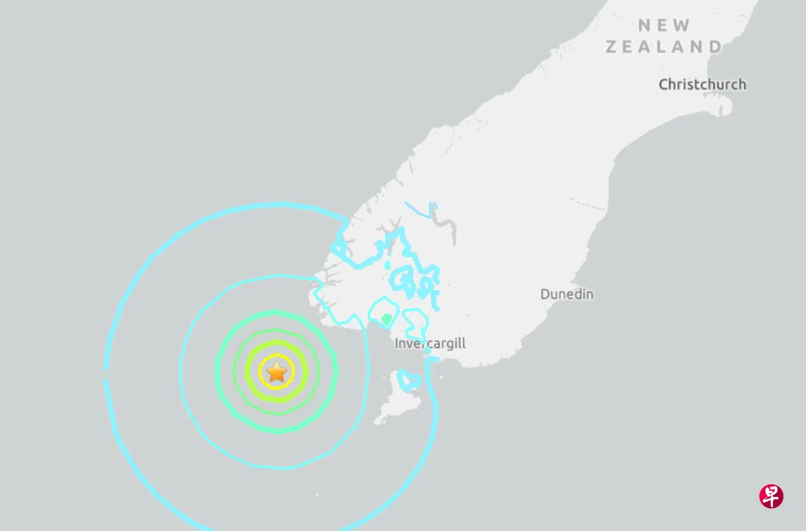 法新社引述美国地质调查局称,此次地震发生在新西兰南岛西南端,最初记录为7.0级,发生在星期二(3月25日)下午2时43分(新加坡时间上午9时43分),震源深度为10公里(6.2英里)。