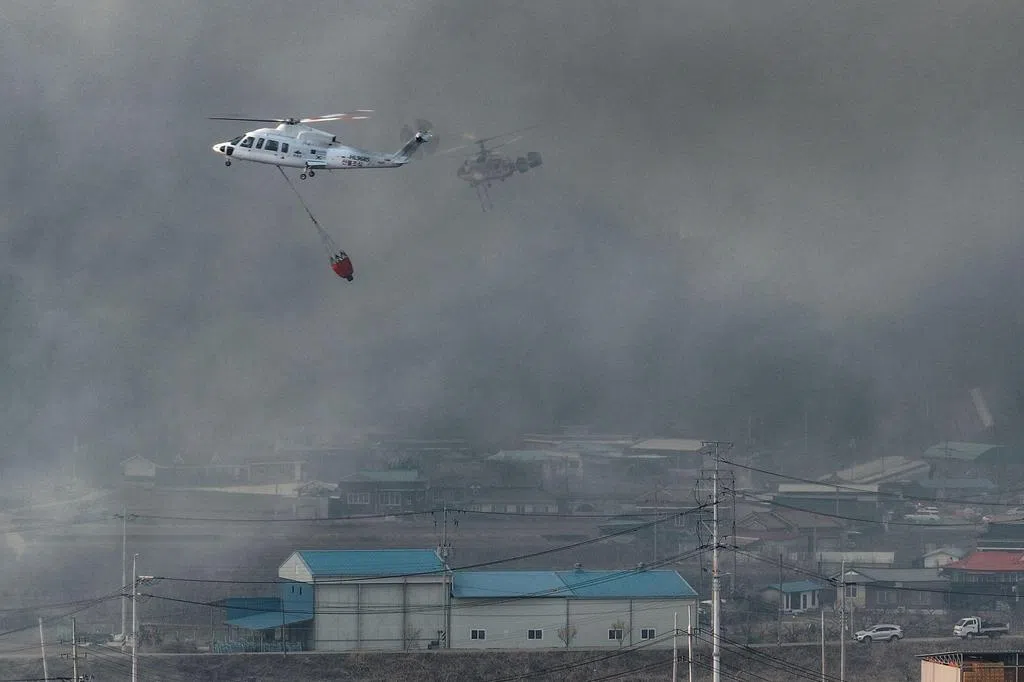 韩国致命的山火在一夜之间恶化,干燥多风的天气阻碍消防部队控制这场重大火灾的努力。