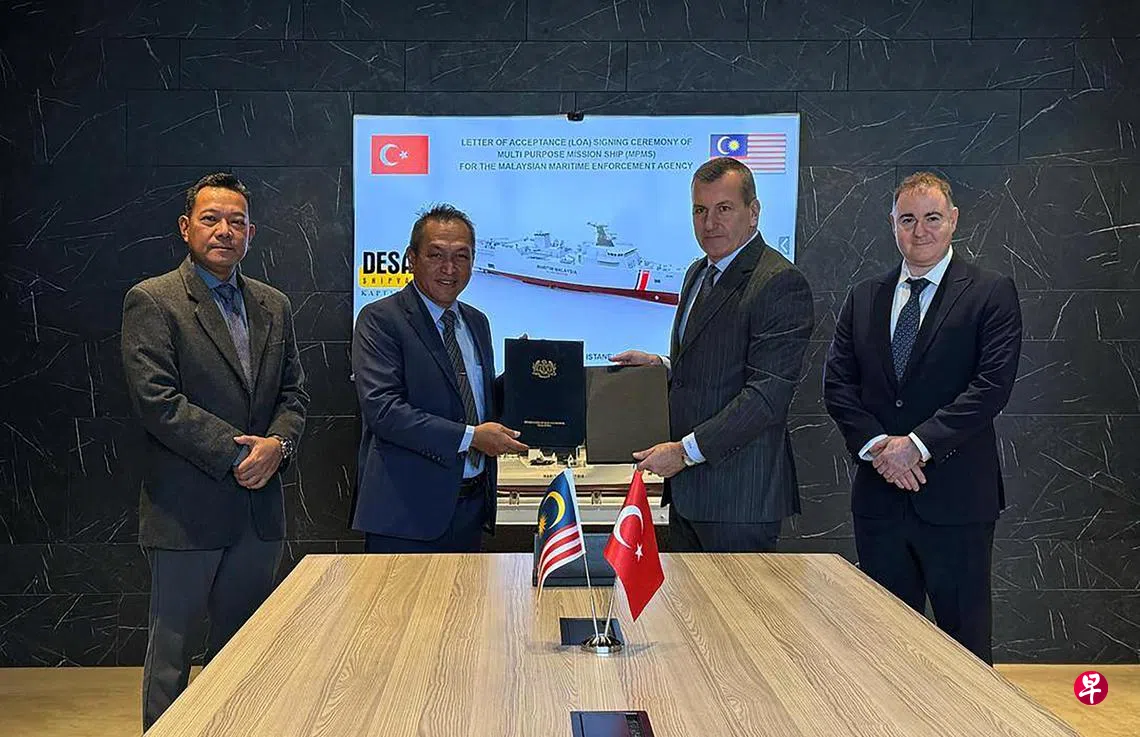 马国海事执法机构总监莫哈末罗斯里星期二(3月25日)礼貌拜会砂拉越邦总理阿邦佐哈里后告诉媒体,这款土耳其制造的军舰,每艘耗资约3亿零429万令吉(约9156万新元)。