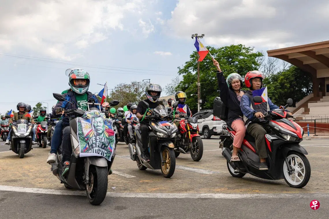 法新社报道,星期五(3月28日)是杜特尔特的80岁生日,但他因国际刑事法院的反人类罪指控,而被拘押在海牙斯海弗宁恩拘留中心。菲国警方当天在菲律宾总统府拦截至少由100名杜特尔特支持者组成的电单车队,他们鸣笛示威,挥舞菲律宾国旗,还举着写有“带他(杜特尔特)回家”的标语牌。