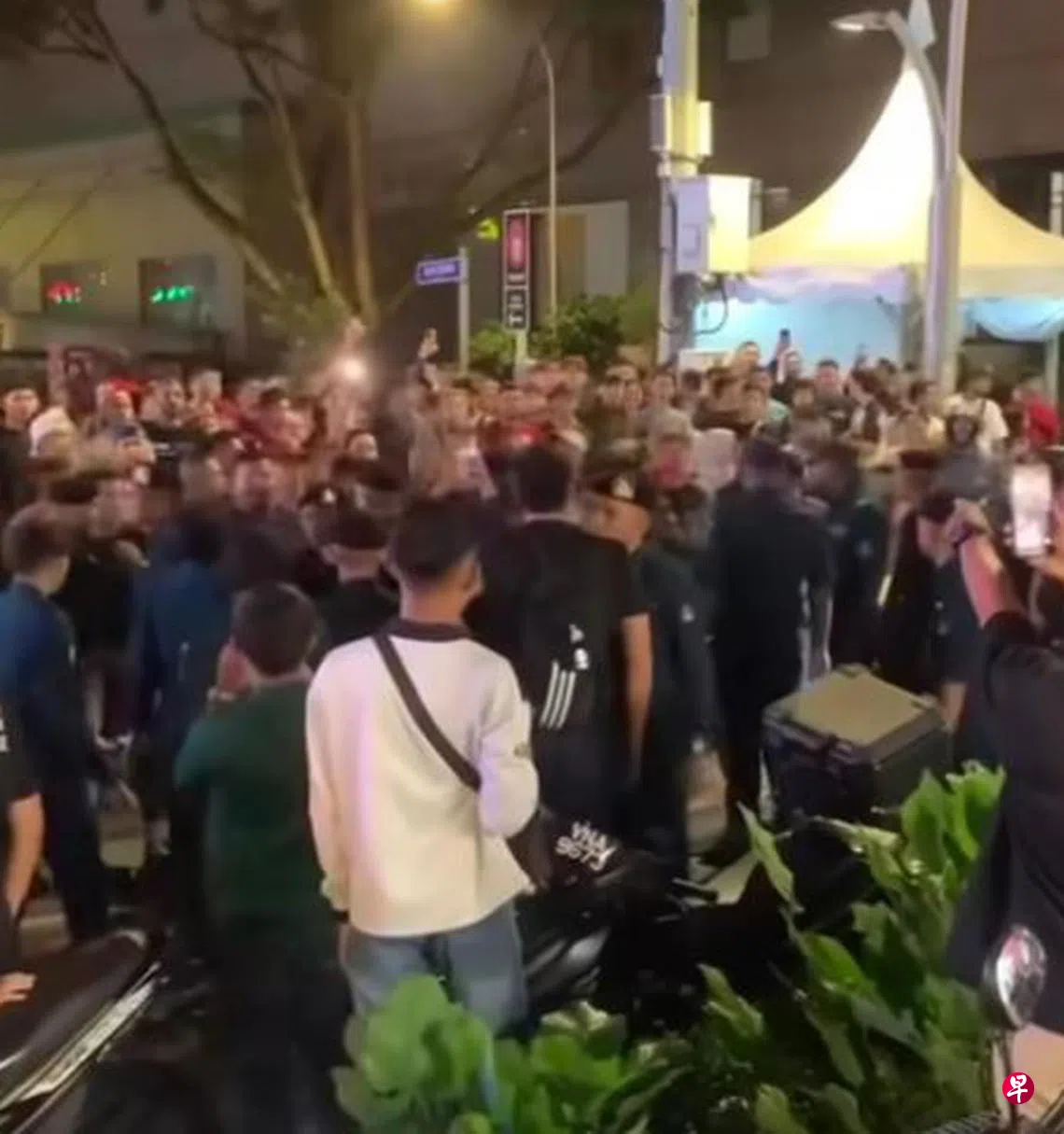 《中国报》引述社交媒体流传的视频报道,夜市突然聚集许多围观者,现场十分混乱及吵闹,期间也清楚看见身穿黑衣的执法当局官员们,正“护送”数名男子离开。