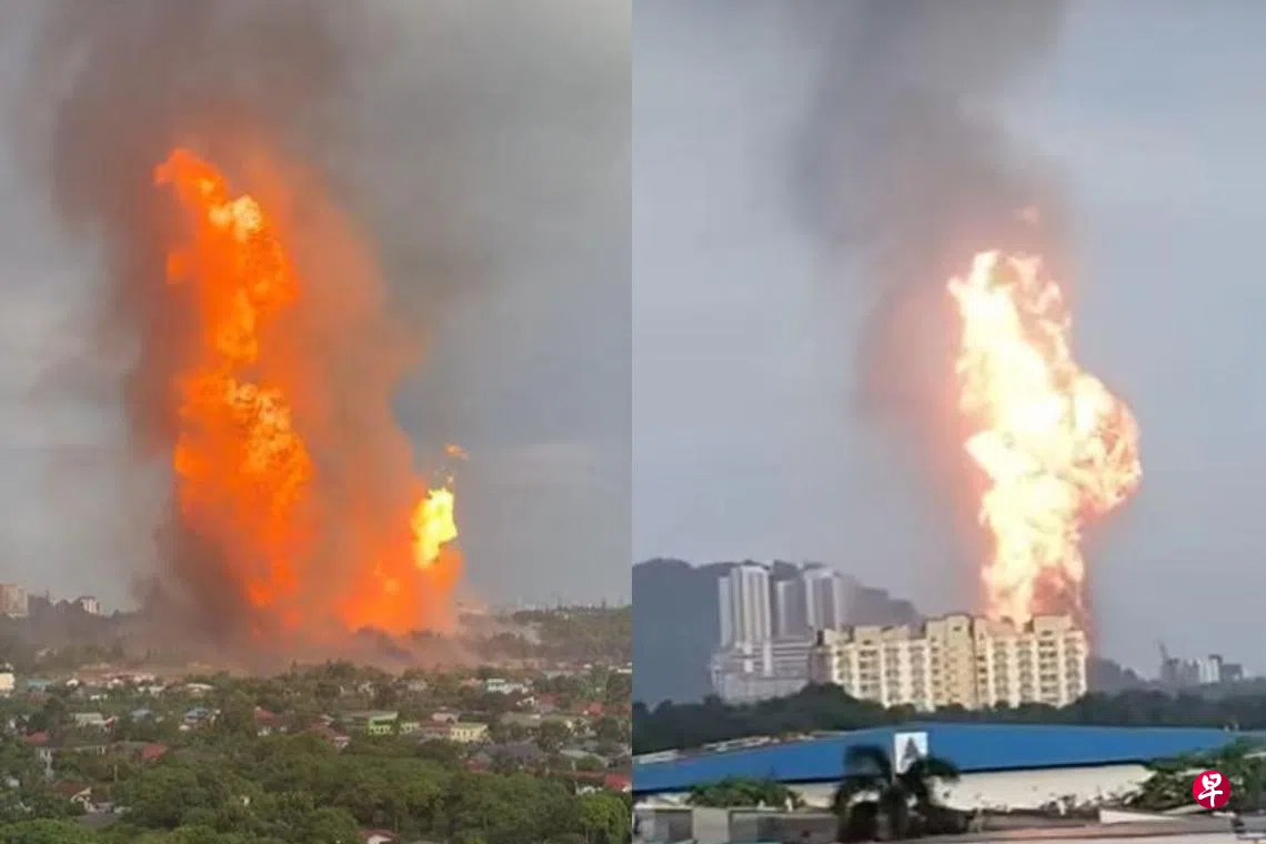 马来西亚雪兰莪州蒲种油气管外泄引发大火,火焰冲天数百公尺。