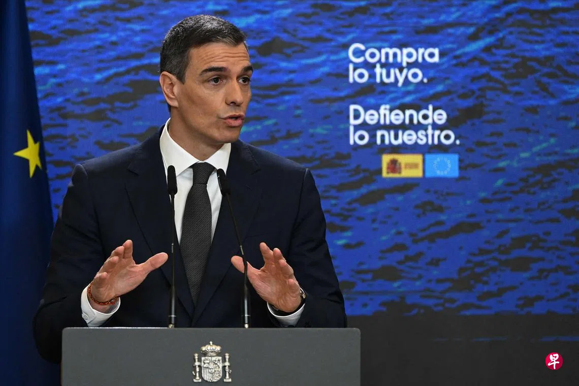 西班牙首相桑切斯星期四(4月3日)猛烈抨击美国总统特朗普宣布的对等关税措施,并宣布了141亿欧元(约208亿新元)的一揽子计划,以协助受到关税影响的西班牙行业。