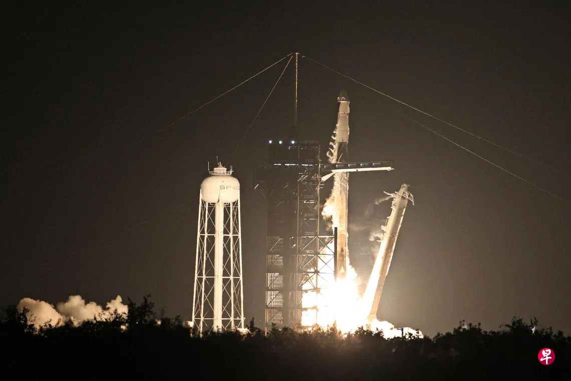 该团队搭乘“龙”飞船于3月31日从佛罗里达州肯尼迪航天中心发射升空。太空探索技术公司的“猎鹰9”火箭把飞船送入轨道倾角为90度的极地轨道。宇航员飞越地球两极,从距地面约430公里的高度观察探索两极,并研究太空环境中的人体健康。