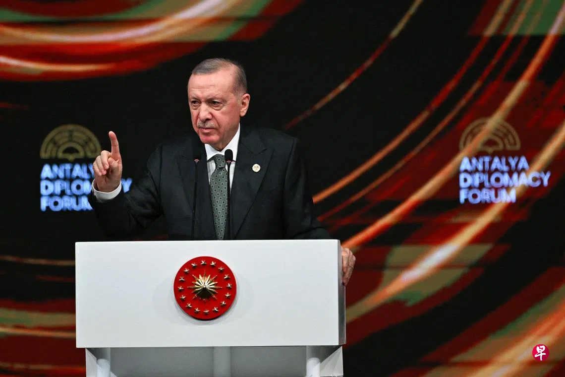 安塔利亚外交论坛(Antalya Diplomacy Forum)2021年首次在安塔利亚东部的度假小镇贝莱克举办,每年举办一次,2023年因土耳其和叙利亚发生大地震停办一届。今年的论坛为期三天,主题为“在分裂的世界中重塑外交”。20多名国家元首和政府首脑、120多名外长和其他部长、约60名国际组织高级代表,以及知名专家学者、工商界人士等在内的4000余名嘉宾参加了本届论坛。